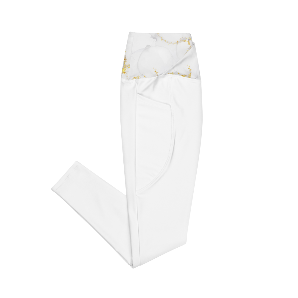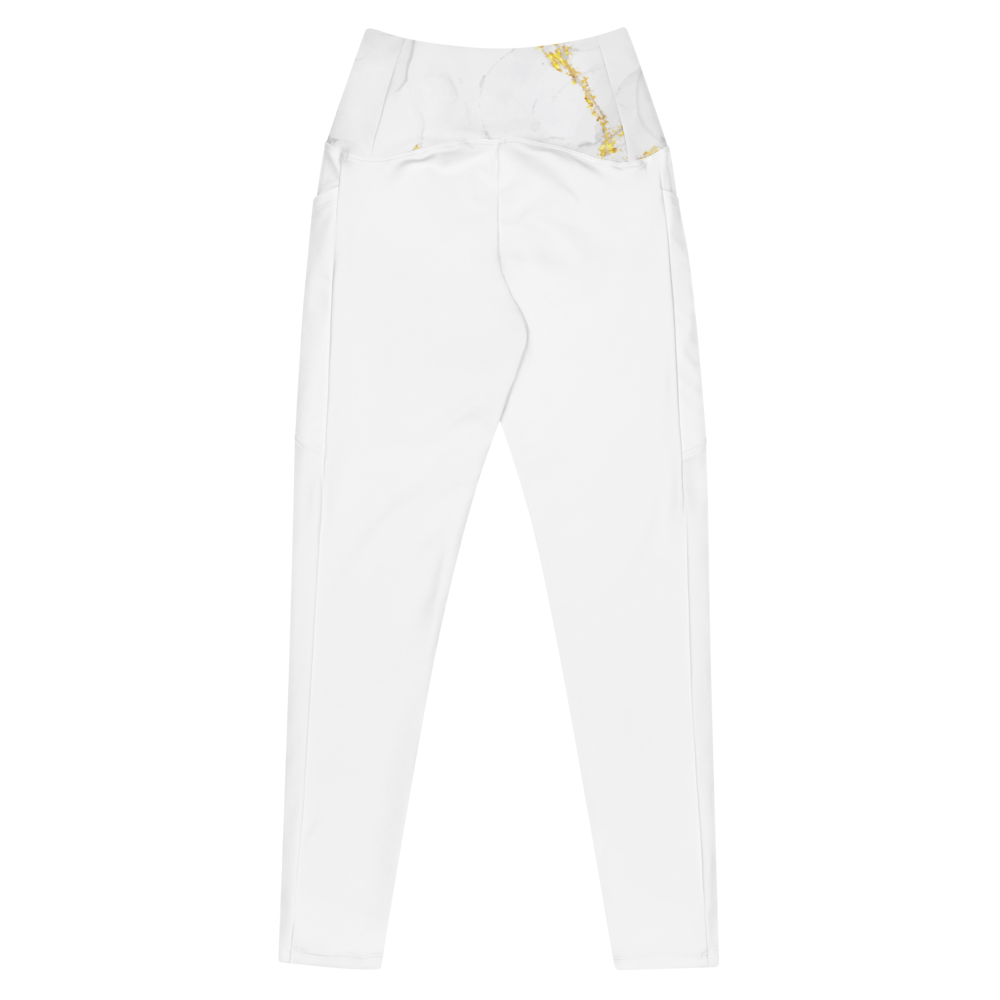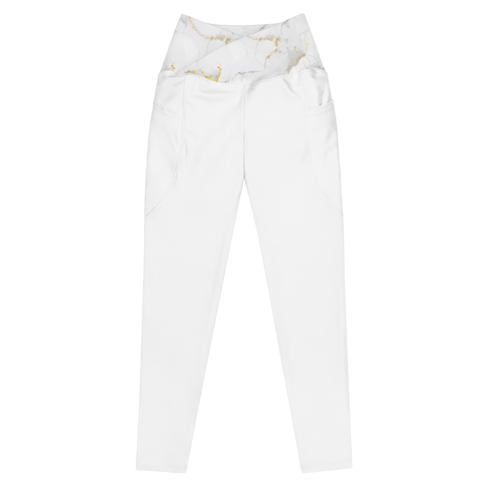 Rock these flattering marble print crossover leggings with pockets. Feel exceptional comfort all through your day and keep your valuables close with the practical side pockets.